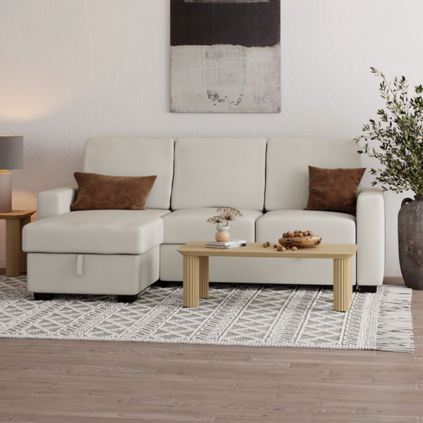 ALFONSO 93.25" SOFA WITH BED & STORAGE IN BEIGE