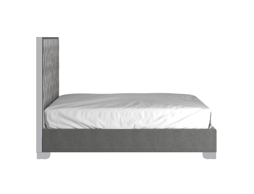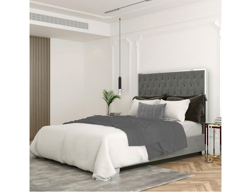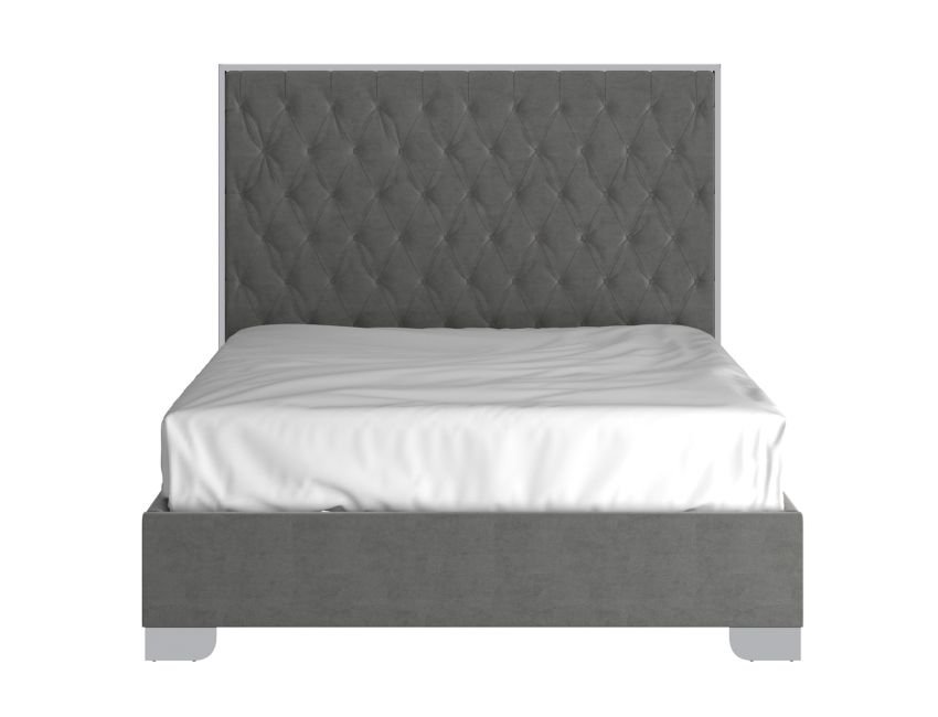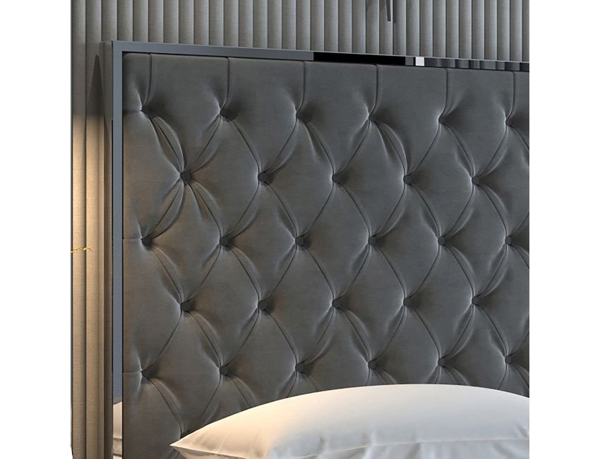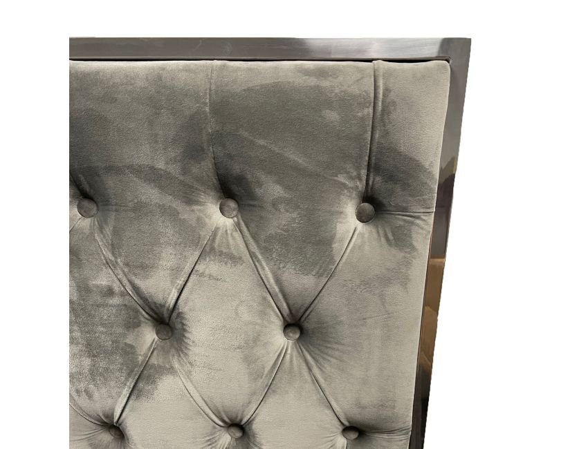 Bring a high-end look to your bedroom with this velvet and stainless steel upholstered bed. Everything from the button tufting on the plush upholstery to the polished metal legs screams style! Perfect for a master bedroom or to up the ante in the guest room.